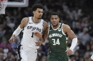 马刺开季3胜0负,文班亚马场均33.3分13.3篮板2.3助攻1.7抢断6盖帽,命中率56.9%;雄鹿2胜1负,字母哥场均36分16板7助1盖帽,命中率68.3%!