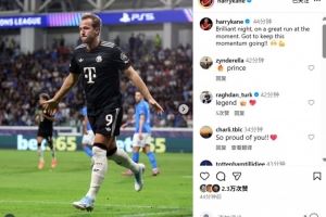 赛后凯恩也在个人社媒晒出庆祝进球照片,配文写道:“精彩的夜晚,球队势头不错,让我们继续延续下去!”